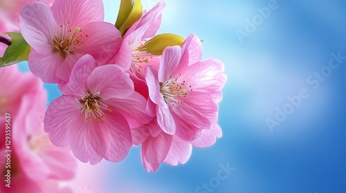 Delicate Pink Cherry Blossom Flowers Against Soft Blue Background