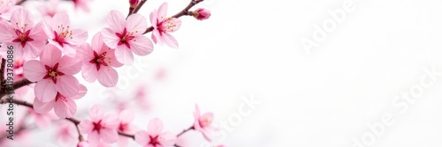 Delicate pink cherry blossoms border a pure white background , pink flowers, Japanese style, design