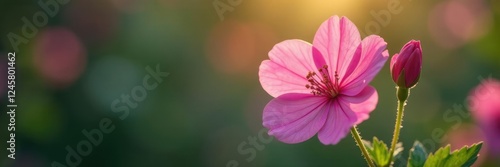 Delicate pink petals unfurl on a geranium stem, garden flowers, spring blooms