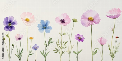 flower, watercolor, pastel, pink, purple, blue, green, botanical, nature, bloom, garden, decorative, artistic, arrangement, fresh, spring, floral, make-up, soft, light, illustration, design, background, beauty, simple, elegance, composition, natural, growth, delicate, vibrant, peaceful, serene, ambience, texture, season, art, creativity, colourful, charme, subtile, aesthetic, impression, calmness, studio, single