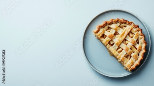Delicious Apple Pie Slice on Plate with Light Blue Background