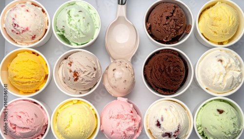 Delicious Assortment of Colorful Ice Cream Scoops in Cups