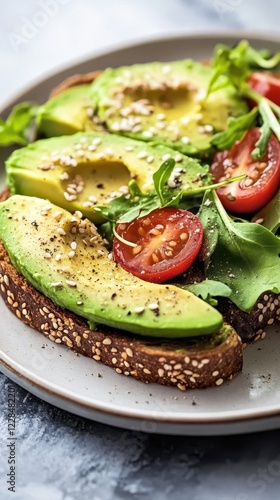 avocado, toast, tomatoes, arugula, sesame, seed, healthy, food, breakfast, lunch, meal, tasty, fresh, green, red, brown, bread, cookery, receipe, eating, diet, nourishment, vegetarian, vegan, epicure, snack, simple, easy, quick, summer, sprinkled, plate, closeup, ingredient, culinary, vibrant, tomatoes, cheese, salad, vegetable, dinner, white, lettuce, cucumber, canape, dish