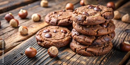 Delicious Bjorg organic chocolate hazelnut cookies on a wooden table , organic, chocolate, hazelnut, cookies, Bjorg, bio, natural