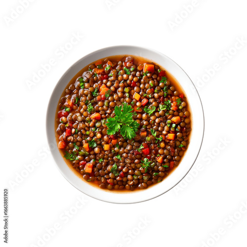 Delicious Brown Lentil Soup with Vegetables in a White Bowl