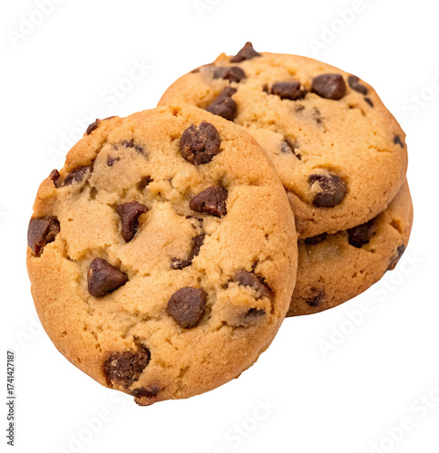 Delicious chocolate chip cookies stacked together revealing rich dark chocolate chunks