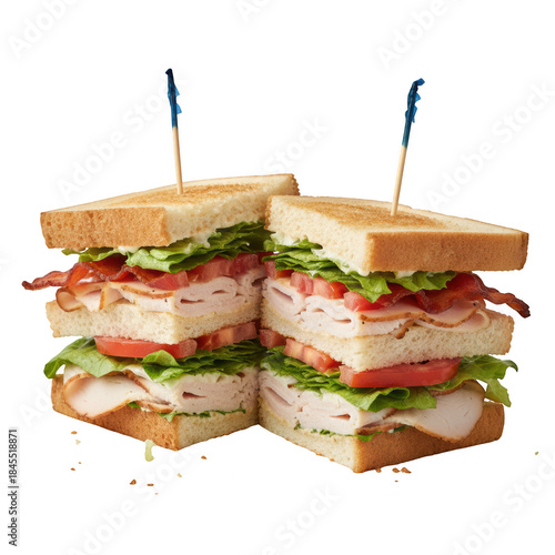Delicious club sandwich with turkey, bacon, lettuce and tomato for lunch