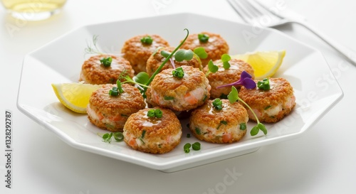 Delicious Crispy Salmon Patties with Lemon Garnish Appetizer Food Photography