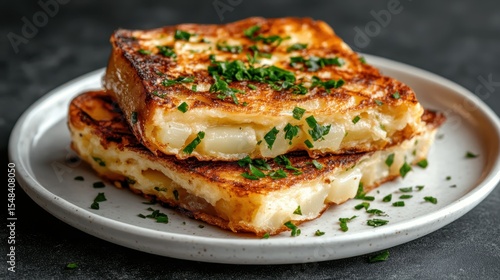Delicious golden crispy potato dish garnished with fresh herbs, representing home-cooked comfort food with an inviting and appetizing visual appeal.