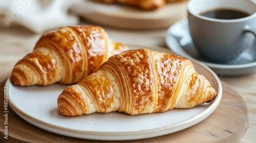 Delicious Golden Croissants Served with a Modern Coffee Cup on a Rustic Table Setting