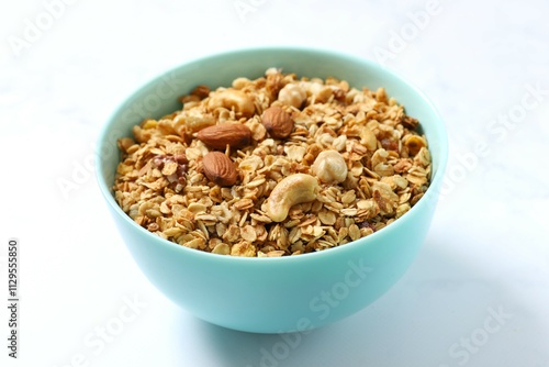 Delicious granola on a light background