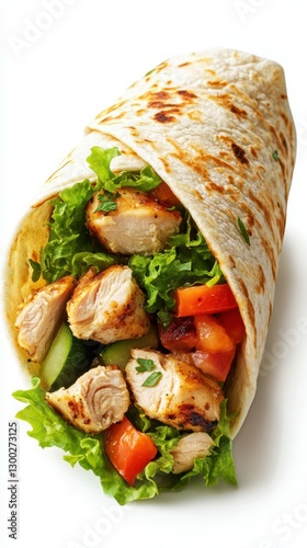 Delicious grilled chicken wrap filled with fresh vegetables and herbs for a healthy meal option