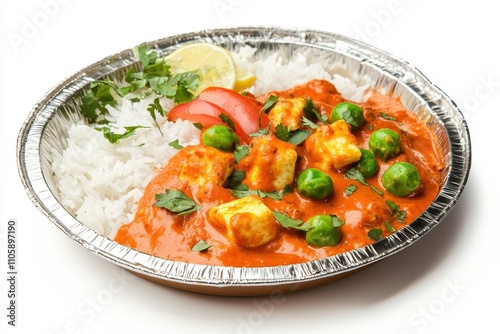 Delicious Indian Paneer Butter Masala with Rice and Fresh Garnish