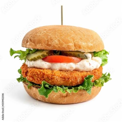 Delicious isolated vegan burger featuring fresh ingredients on a clean white background