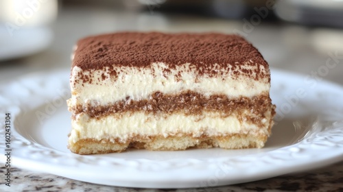 Delicious Italian Tiramisu Dessert with Ladyfingers, Mascarpone, Cocoa, and Coffee Flavors