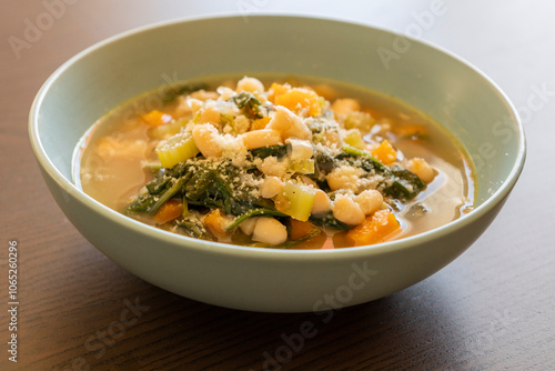 closeup, comfort food, italian cuisine, food photography, vegetarian meal, soup bowl, fresh vegetable, natural light