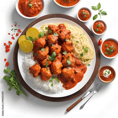 Delicious juicy tasty Chicken tikka dish well cooked with some vegetable served, Chicken tikka masala, cooked marinated chicken in spiced curry sauce
