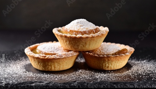 Delicious Mini Tarts With Powdered Sugar On Slate