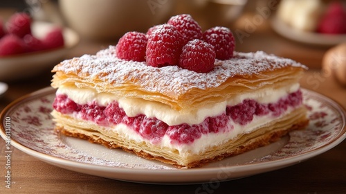 Delicious Raspberry Mille-feuille Pastry, Exquisite French Dessert