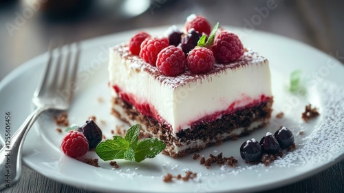 Delicious raspberry tiramisu dessert on a plate, perfect for a sweet treat