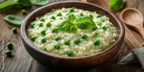delicious, risotto, pea, crock, creamy, texture, colours, meal, gathering, friends, food, cookery, dining, comfort, epicure, dish, ingredient, eatery, plate, bowl, fresh, green, savoury, hearty, cooking, culinary, receipe, eating, herb, vegetarian, italian, deliciously, warmth, celebration, table, homemade, nourishment, seasonal, flavorful, feast, indulgent, wholesome, local, life events, satisfaction, share