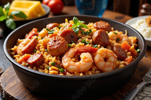 Delicious Shrimp and Sausage Jambalaya Rice Dish in Cast Iron Pan