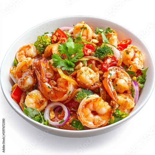 Delicious Spicy Shrimp Stir Fry with Vegetables in a Bowl A vibrant and healthy meal