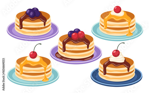Delicious Stack of Pancakes with Sweet Toppings Vector Illustration Breakfast Treat Sweet Dessert Food Photography Recipe Ideas