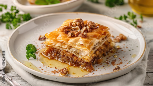 baklava, dessert, turkish, layer, nut, honey, sweet, delicious, pastry, traditional, food, epicure, plate, culinary, receipe, serving, authentic, indulgent, flaky, treat, hand-made, sheet, sirup, snack, festive, rich, plating, gourmet food, feast, eastern, mediterranean, cookery, herb, garnish, decoration, colourful, texture, holiday, tasty, favor, aroma