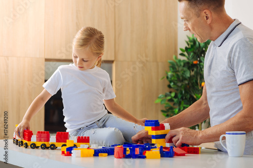 father, girl, parenthood, toy, modern, relax, family, smart, enjoyment, colourful, fatherhood, development, playing, relationship, offspring, home, children, parental, children, childhood, adult, inside, casual attire, closeup, caucasian, upbringing, comfort, rest, daytime, eltern, role, indoor, relation, person, guidance, creative, daughter, game, constructor, set, piece, leisure, interpersonal