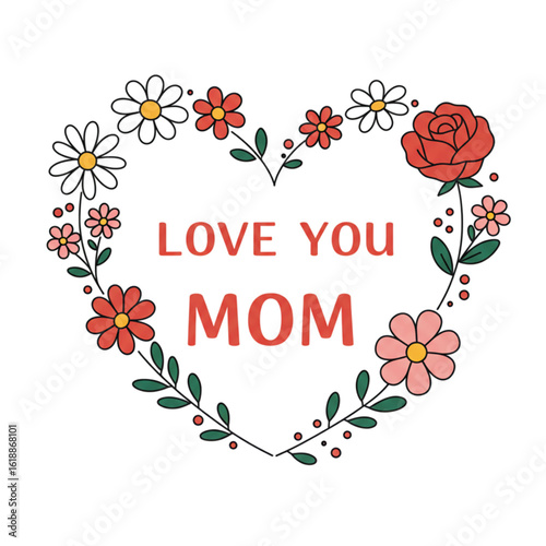 Delightful floral heart wishing 'Love You Mom' perfect for Mother's Day greeting cards and heartfelt messages