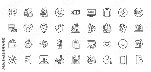 Delivery calendar, Diesel station and Call center line icons pack. AI, Question and Answer, Map pin icons. No smoking, Bitcoin, Winner podium web icon. Vector