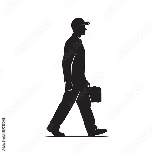Delivery Man Walking with Briefcase in Simple Silhouette Style with Black Color on White Background for Logistics