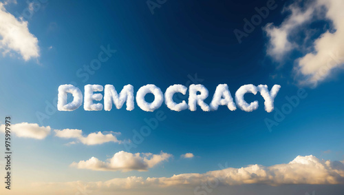 democracy, word, made, cloud, blue, sky, background, business, concept, cloud, three-dimensional, text, success, signs, quality, illustration, buttons, service, technology, client, definition, god