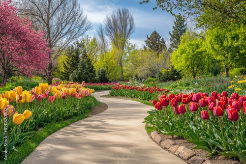 Denver Spring: Tulip Blossom in Colorful Denver Botanic Gardens