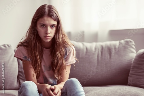 Depressed 15 years old Caucausian teenager girl, sad and unhappy. Teenager's depression danger.