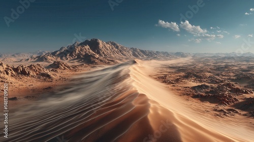 desert, sand, dune, ripple, mountain, rocky, dry, arid, landscape, terrain, nature, wilderness, exploration, sunlight, shadow, sky, heat, geology, scenic, travel, texture, earth, formation, wild, environment, ridge, canyon, timeless, background, orange, warm, pattern, dirtied, natural, peaceful, horizon, sunrise, surface, barren, ground, expanse, solitude, minimal, vista, climate, dusty