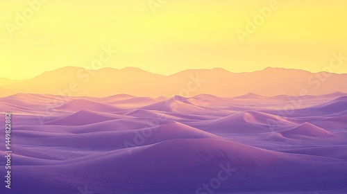 Desert plains gradient sky shifting from yellow to lavender rolling dunes casting soft shadows warm light creating vivid contrasts