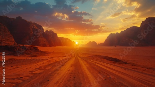 desert, road, travel, dawn, sunrise, journey, adventure, scenic, landscape, sand, horizon, sky, drive, explore, solitude, remote, arid, morning, empty, nature, beauty, wanderlust, dust, traveler, dry, route, open, huge, terrain, concept, sun, exploration, nomad, car, deserted, vehicle