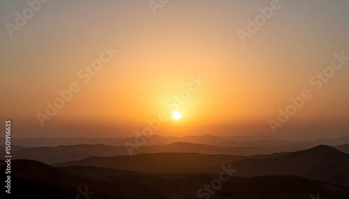 sunset, desert, landscape, mountain, orange, yellow, sky, horizon, hill, dusk, evening, nature, scenic, view, panorama, golden hour, warm, peaceful, serene, calm, tranquil, still, quiet, solitude, remote, arid, dry, heat, sun, ray