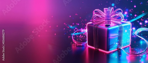 gift, box, banner, design, copy space, text, cyber, theme, neon, electronic, present, futuristic, festive, idea, advertisement, concept, occasion, visual, decoration, graphic, happy, event, promotion, modern, creative, illustration, special, beautiful, techno, ribbon, celebration, surprise