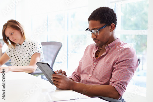 meeting, discussion, collaborating, brainstorming, business, businessman, businesswoman, team, computer, touch screen, technology, casual attire, office, studio, agency, working, four people, people, person, design, modern, desk, sitting, creative, tied-up, designer, horizontal, hispanic, man, male, man, woman, woman, female, happy, 20s, 20s, african american, black, asian, caucasian, 40s, 40s, portrait