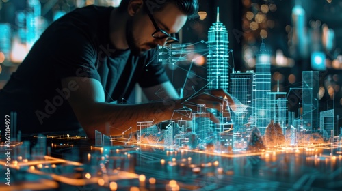 Designers design urban communities using holographic technology to create world-class eco-cities.