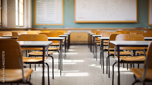 Desk and Chairs in Classroom Creating a Welcoming Environment for Education. created with Generative AI