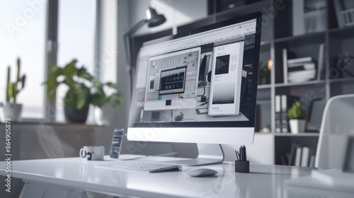 computer, desktop, office, graphic, designer, studio, monochrome, room, desk, work, workspace, copy space, modern, elegant, setup, interior, white, black, remote, freelance, home, house, workplace, design, digital, business, minimalist, clean, professional, artist, creative, monitor, screen, industry, indoor, web, table, space, background, technology, tablet, job, illustration, creativity, keyboard, concept, drawing, notebook, paper