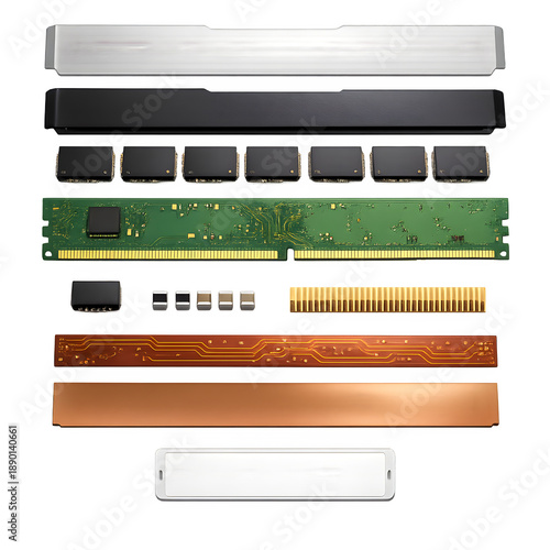 jampacked, memory, desktop, computer, hardware, component, technology, electronic, module, upgrade, performance, speed, digital, system, device, equipment, engineering, isolated, white, background, collection, part, circuit, pcb, chipset, silicon, datum, storage, processing, computing, modern, technical, workstation, gaming, repair, maintenance, bricolage, innovation, disassemble