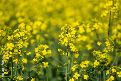 Detail of flowering rapeseed canola or colza in latin Brassica Napus, plant for green energy and oil industry, rapeseed plant.