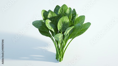 Detailed 3D Model of Fresh Spinach Bunch with Vibrant Green Leaves on White Background