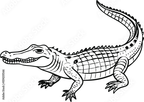 Detailed Black and White Crocodile Illustration