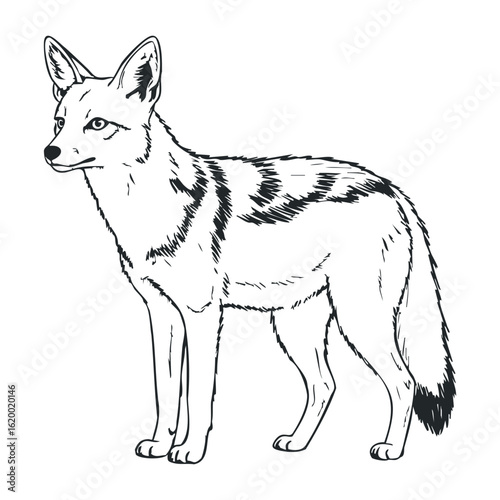 Detailed black and white fox outline. Vector illustration